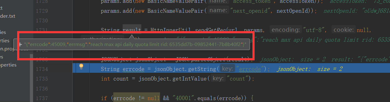 https://api.weixin.qq.com/cgi-bin/user/get 这个接口每天嗲用最大限制是多少,竟然超限了。具体登录公众号后台 -> 设置与开发 -> 接口权限 里面查看,或者调用这个接口查询:https://developers.weixin.qq.com/doc/offiaccount/openApi/get_api_quota.html