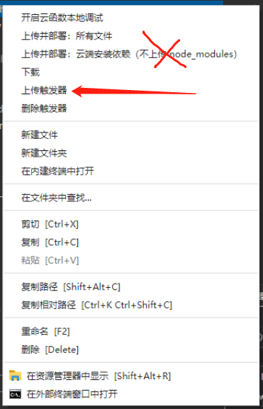 注意:这里上传触发器不是“上传并部署云函数”,而是点击“上传触发器”,这样才会生效。
