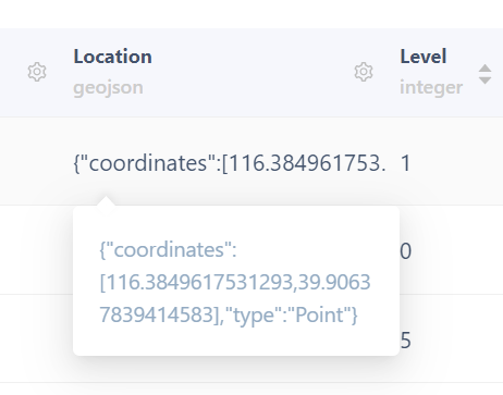 保存成功后我们在知晓云后台就能看到这样的地理位置数据: