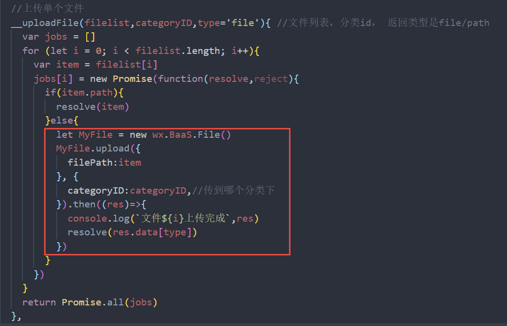 然后根据文档,只需要几行核心代码就可以封装好一个批量上传图片的公共方法,上传完成后我们在数据表中保存图片的 id 或是 url(使用 uniapp 框架):