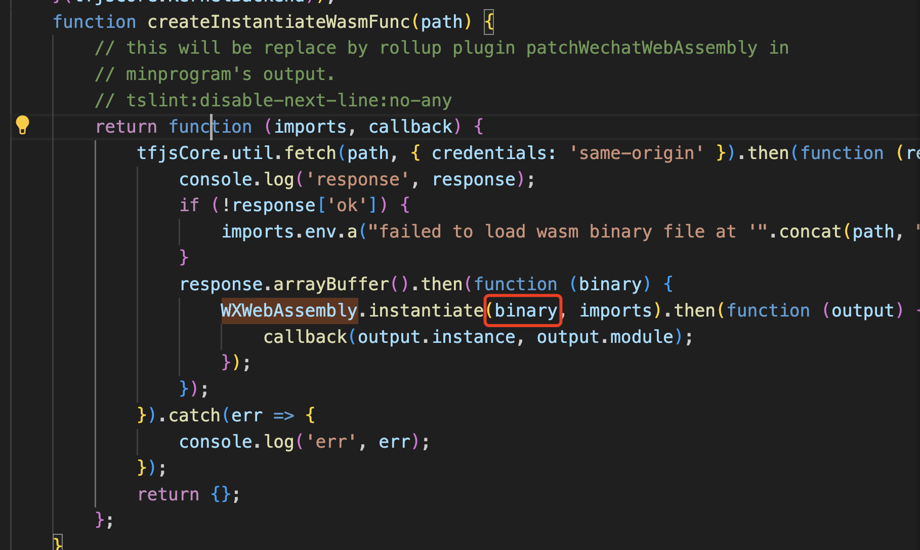 查看源码对比发现,WXWebAssembly.instantiate第一参数接收的是binary,问题定位
