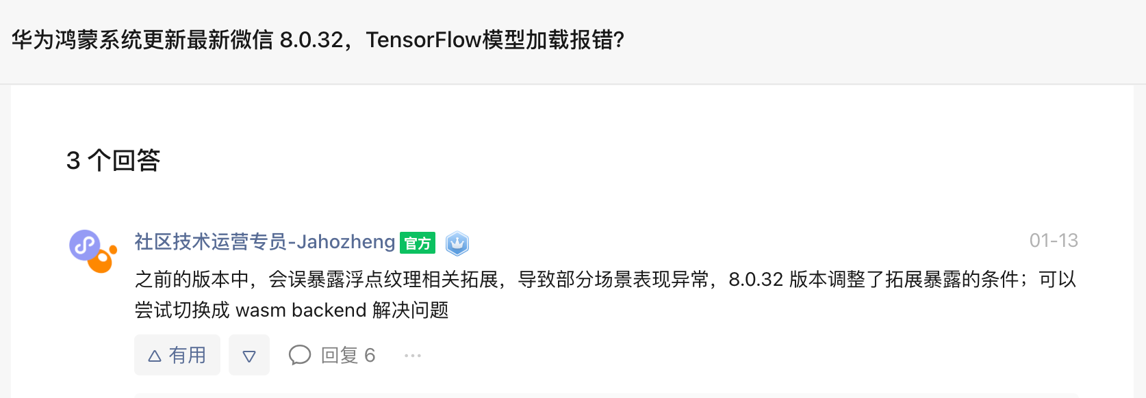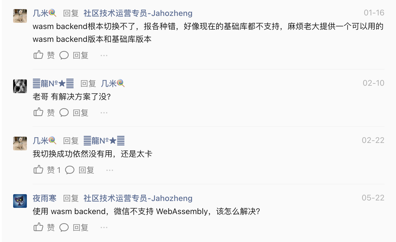 确定方案:在"菊厂"不支持的前提下,只能采用小程序官方推荐的方案 -- 针对异常机型切换到wasm后端
