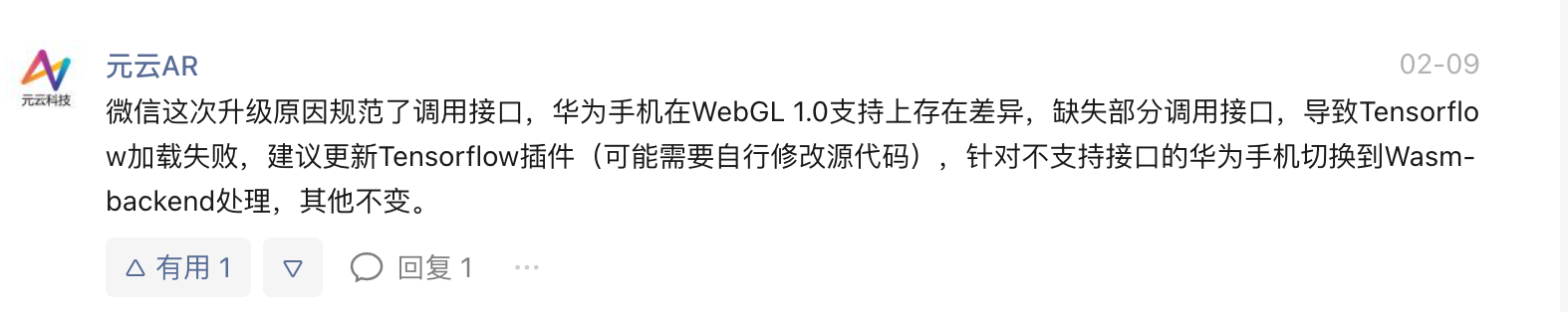 经过一通折腾,引入wasm后还对原先的小程序分了包,但是在最后一步卡住了,需要修改@tensorflow/tfjs-backend-wasm库的源码(加载wasm文件,调研时用setWasmPaths方法设置在线链接好像是可以的),当时直接替换编译后的代码,应该哪里还有问题,只能给客户回复不好弄,还需要时间尝试 后面继续业务迭代,又搁置了...