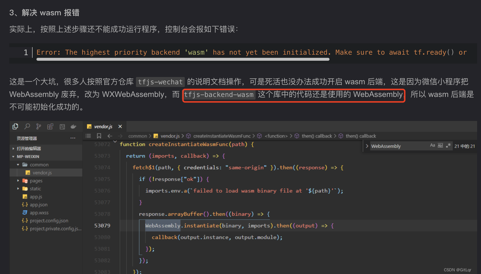 应该是个已经被修复了,不过时间这块我有点懵,我记得第一次看源码的时候确实和博客里面一样,都是WebAssembly,但是这次确实都改成了WXWebAssembly,不过既然已经修复,那就不用考虑插件替换源码的问题了,只需要完成wasm路径设置即可成功切换wasm后端
