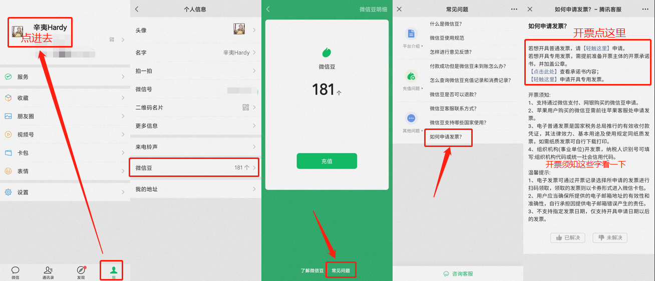 开专票操作会比较复杂需要填一个承诺书并盖公章,按照截图可以找到入口并按指引操作。苹果用户需要在苹果客服处开发票。