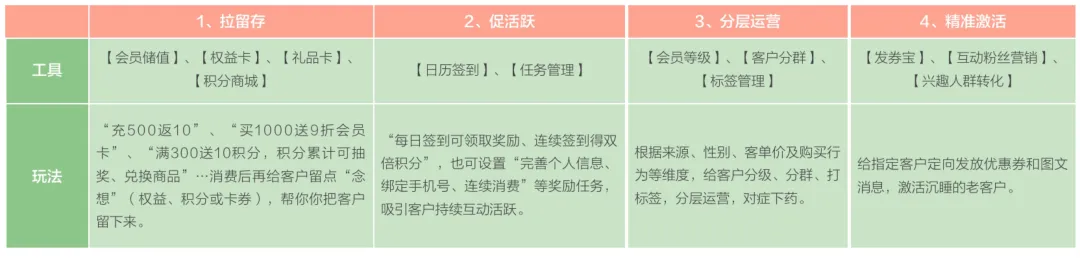 经营老客:通过会员权益、储值、积分等工具把流量沉淀在自己店里,逐步把流量变客户、把客户变成会员,产生更多复购增购