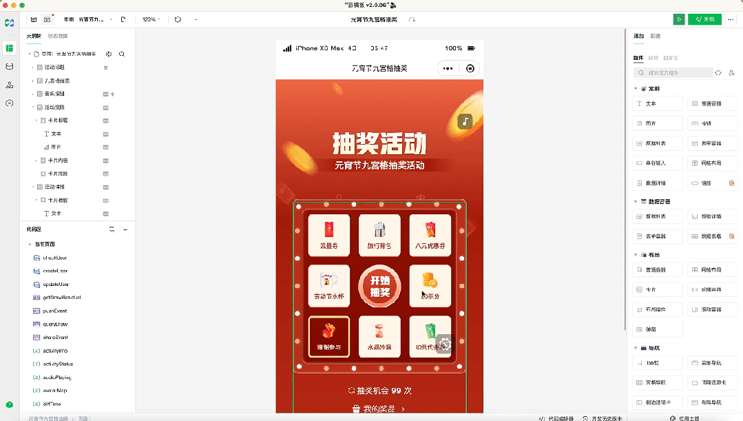 由于小程序·云模板有很大的灵活性,默认提供带管理后台的各种形态抽奖页面,基本满足市面上的绝大部分抽奖活动使用需求。