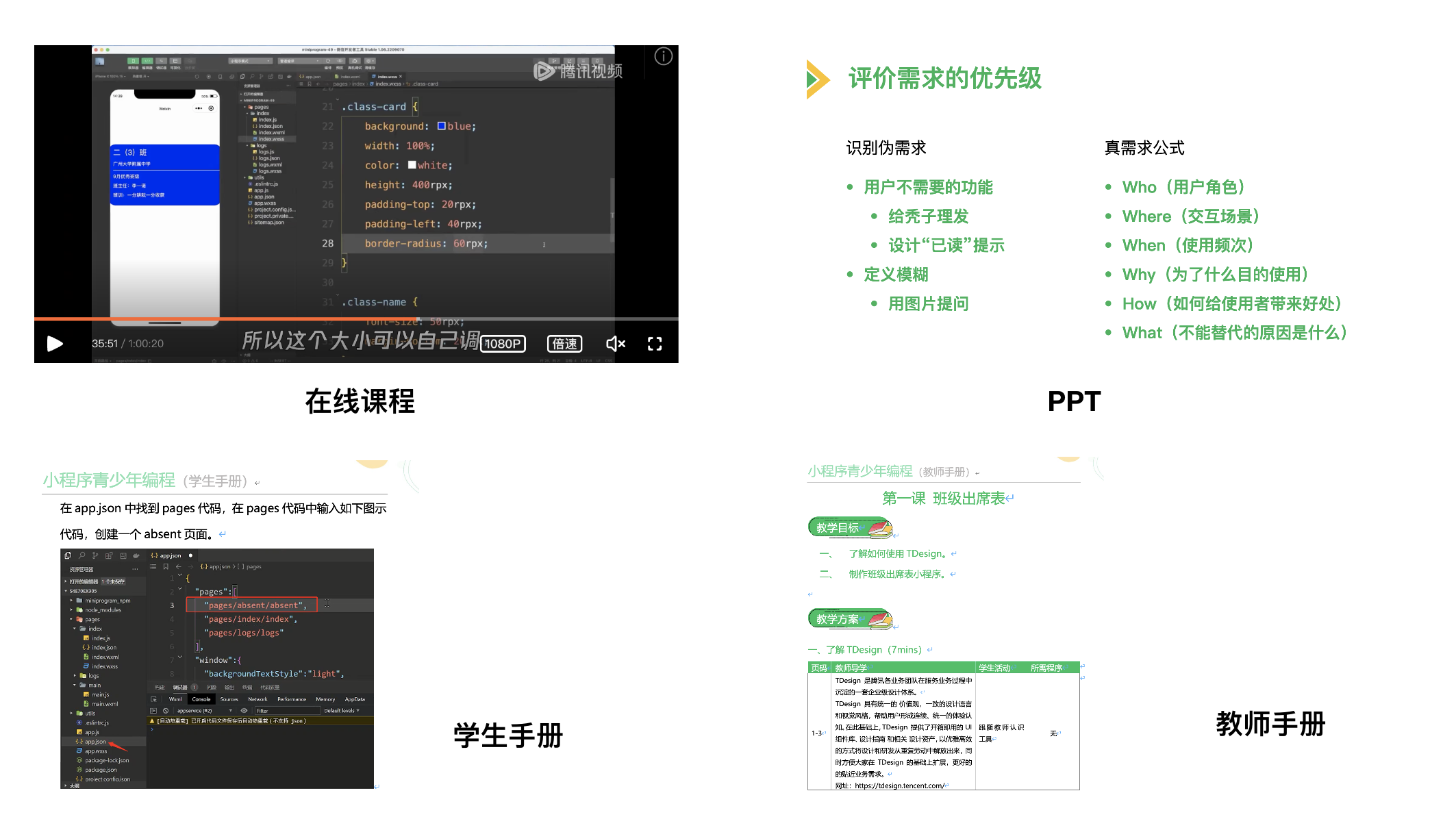 微信小程序团队提供一系列课程、教案、PPT,轻松开展 1-2 学期的教学。