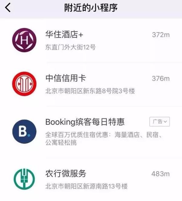 细心的朋友们应该能注意到,这里还藏着一个重要的广告位,标注“广告”字样的小程序就是,可以比较精准地获取这些特定地点的流量。
