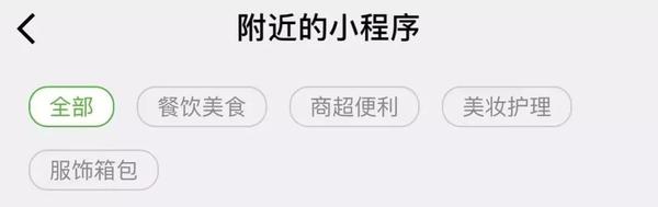 在小程序的搜索框下,还有一个很重要的二级入口:附近的小程序。