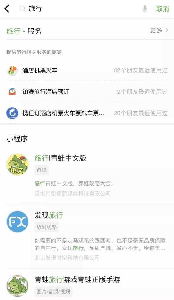 “发现”-“小程序“页面,就是小程序的搜索框。搜索关键词会出现使用过的小程序和其他小程序。