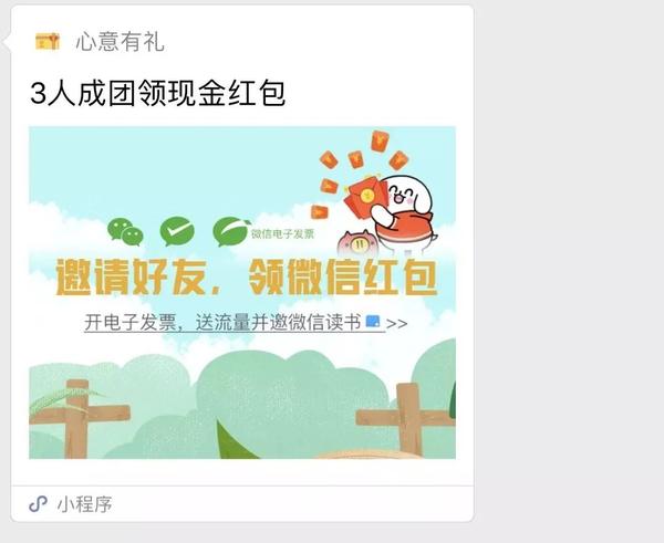 还有一种裂变模式比较常见,即把小程序分享到群里,通过新用户的点击,两方均可获得收益。