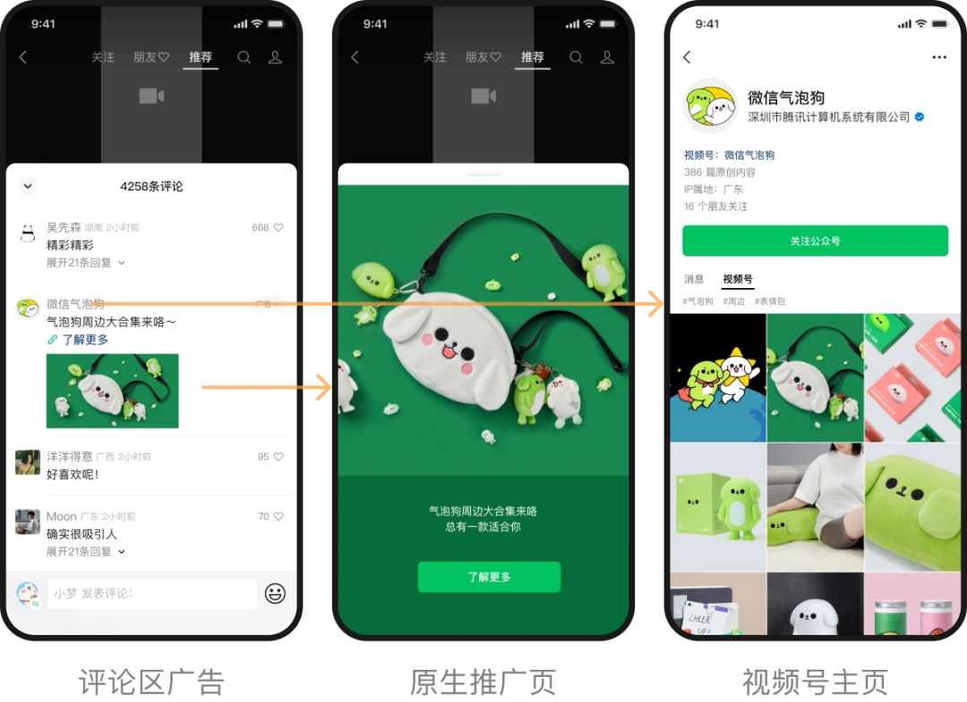 此外,视频号还打通了企业微信和微信客服的新链路。新链路支持用户在视频号场景中一键唤起企业微信名片页或微信客服对话窗口,帮助广告主及时承接流量,提高用户转化。视频号已成为广告主投放原生广告及私域转化不可或缺的新阵地。