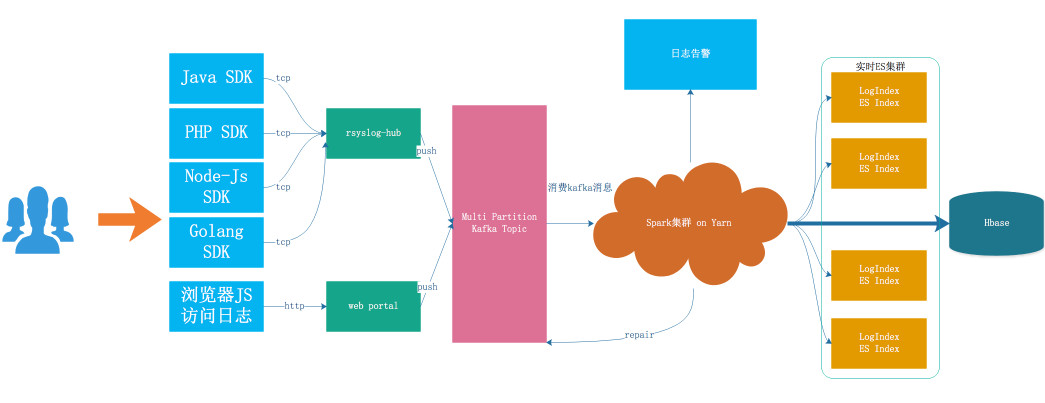 缺乏部分链路监控:日志从产生到可以检索,经过多级模块,现在采集,日志缓冲层还未串联,无法对丢失情况进行精准监控,并及时推送告警。