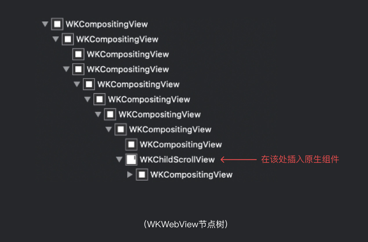 小程序 iOS 端的「同层渲染」也正是基于 WKChildScrollView 实现的,原生组件在 attached 之后会直接挂载到预先创建好的 WKChildScrollView 容器下,大致的流程如下:
