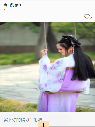 初始界面展示表白对象,表白内容和表白对象的图片,点击中间的加号可添加一条记录信息,添加完记录可以对记录进行点赞和评论。