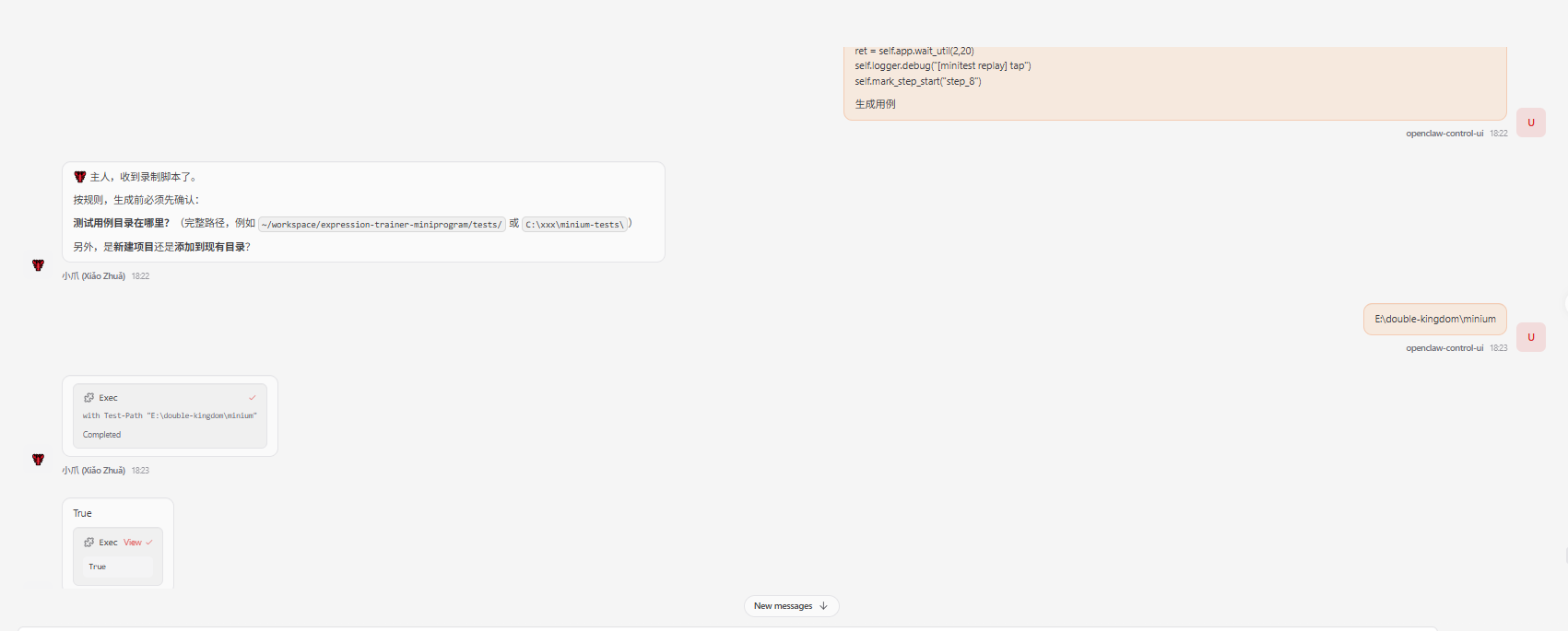 使用 OpenClaw Skills + 录制回放功能,生成 Minium 测试脚本
