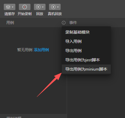 - 停止录制,导出Minium脚本,导出的文件下有个时间戳为名的文件,打开复制里面的py文件内容