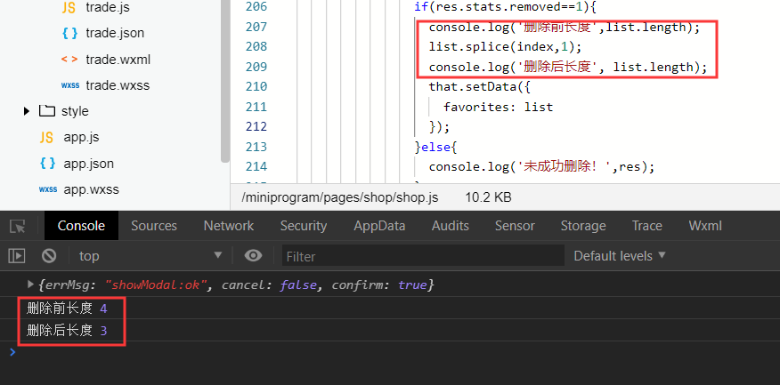 2、执行结果【其中index的值为“删除数组元素的起始索引”】