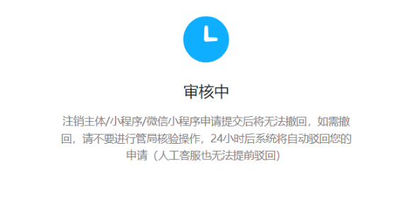 小程序注销备案里面注销小程序主体这哥个申请之后一定撤回不了吗