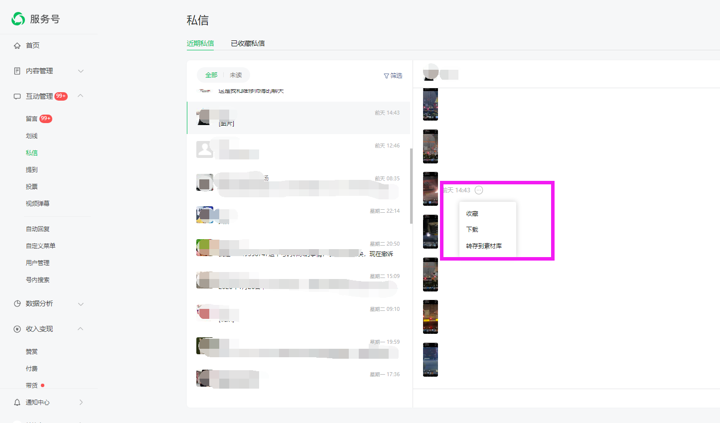 目前经常有他人发来数十个或几十个图片或视频,需要一个一个点击另存,非常不便,且没有序号,经常无法分辨哪个是已下载,哪个是未下载的,,