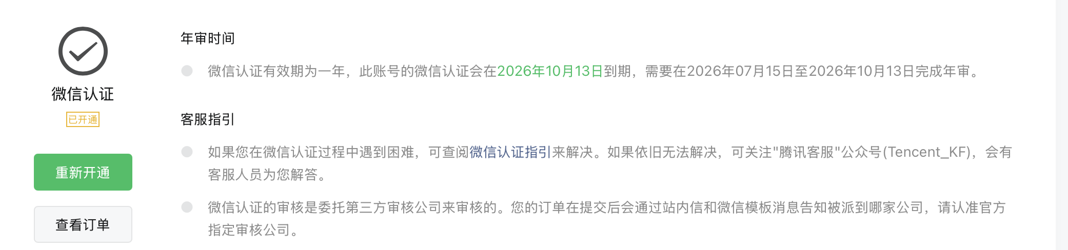 我在2025年10月进行微信公众号认证,后台显示2026年10月过期,想问一下这个是认证什么内容