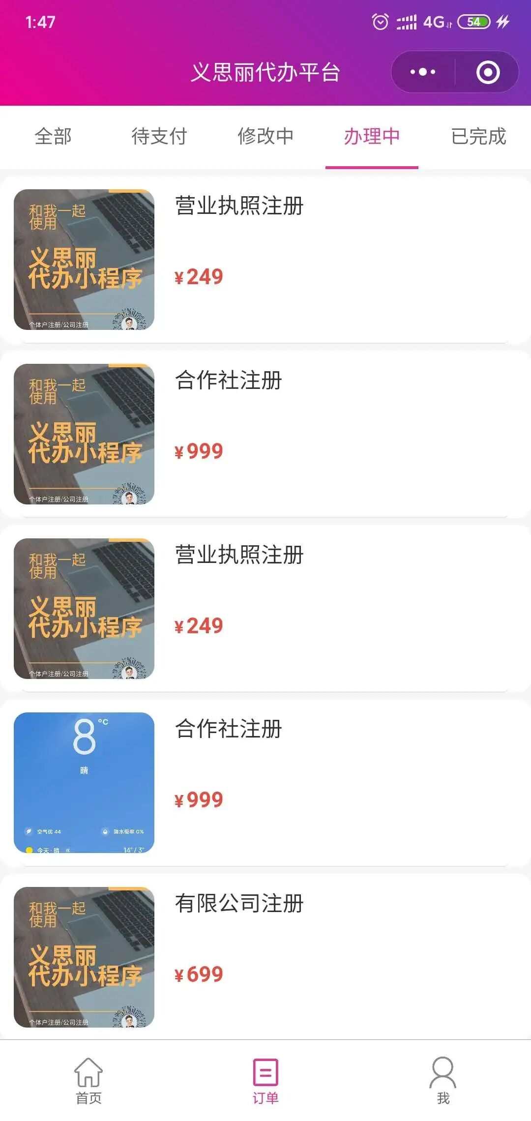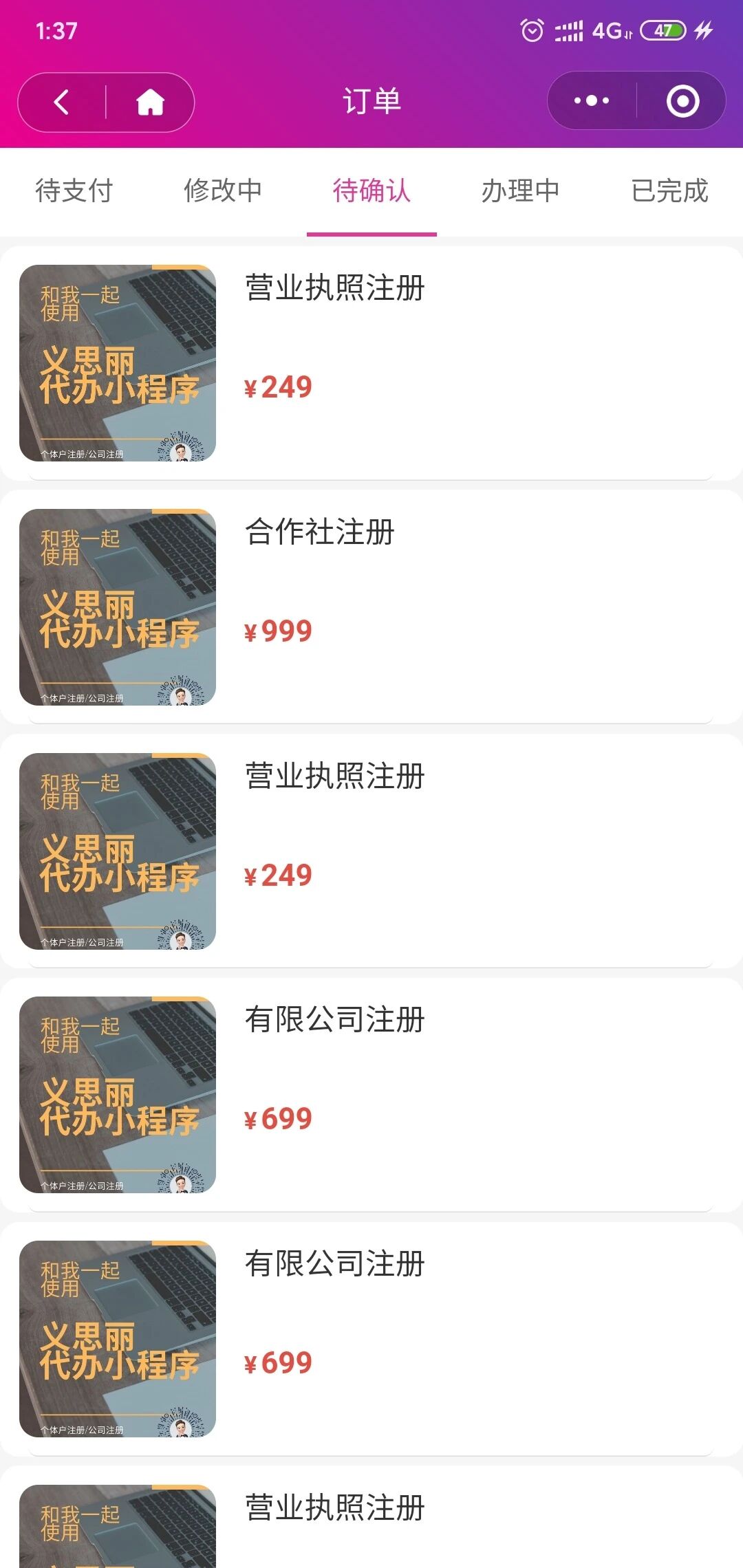 2.需要通过小程序代办工商注册的企业