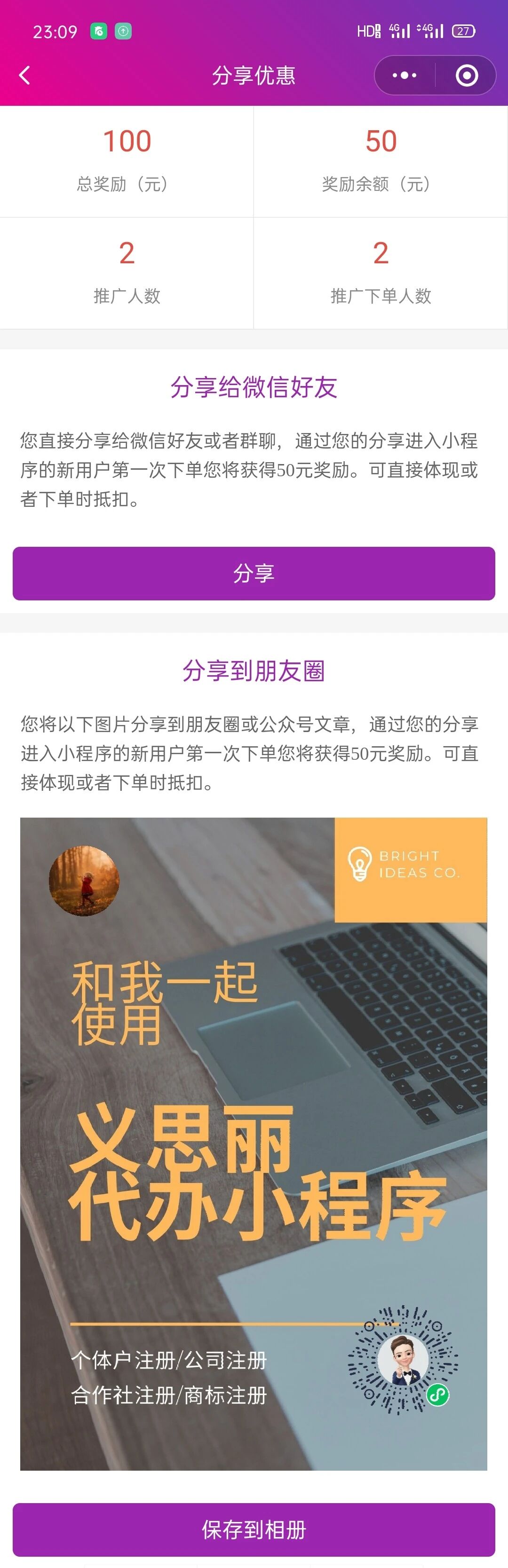 四,分享到好友或朋友圈海报获得得优惠