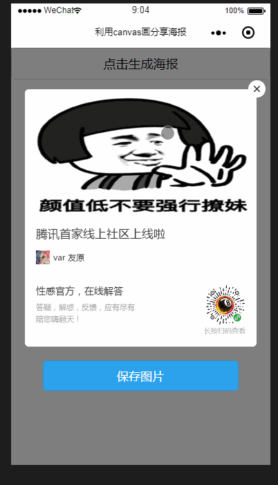 今天给大家分享一下利用canvas生成朋友圈分享海报