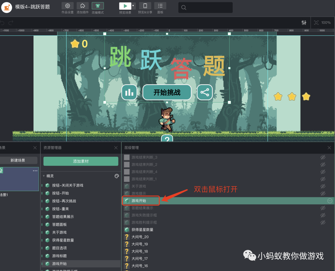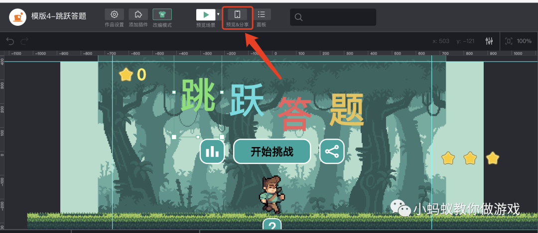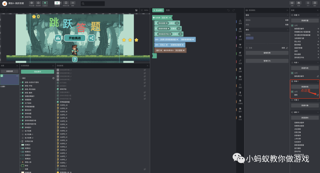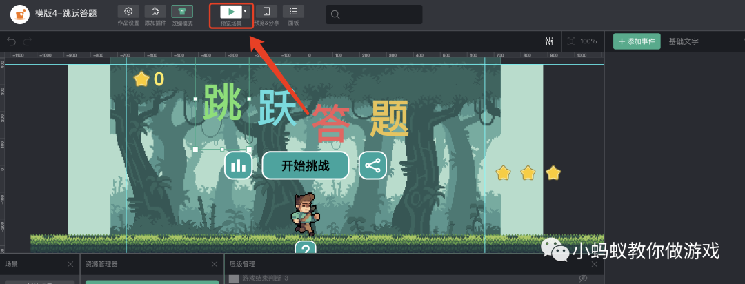 想要制作一个自己的跳跃答题小游戏,你只需要在模版的基础上进行一定的改编即可,下面我们就来看一下如何改编游戏。