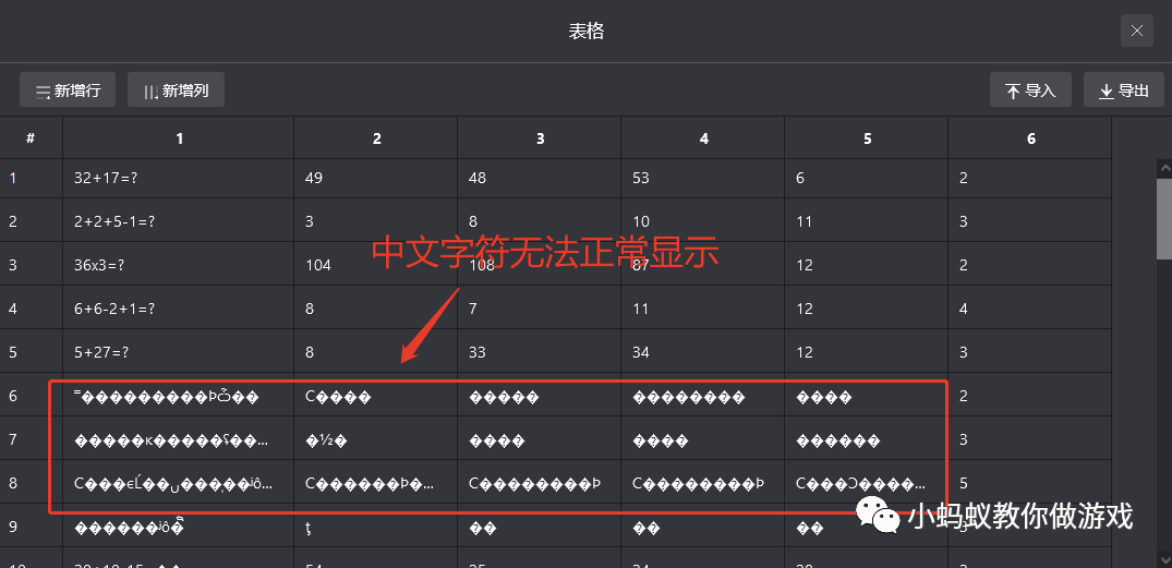 如果你的电脑是 Windows 操作系统,导入题库数据后会出现乱码问题(所有的中文变为乱码),如下图所示。