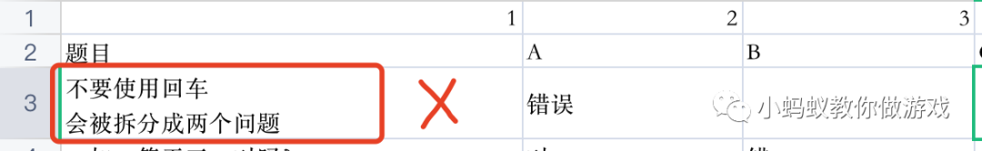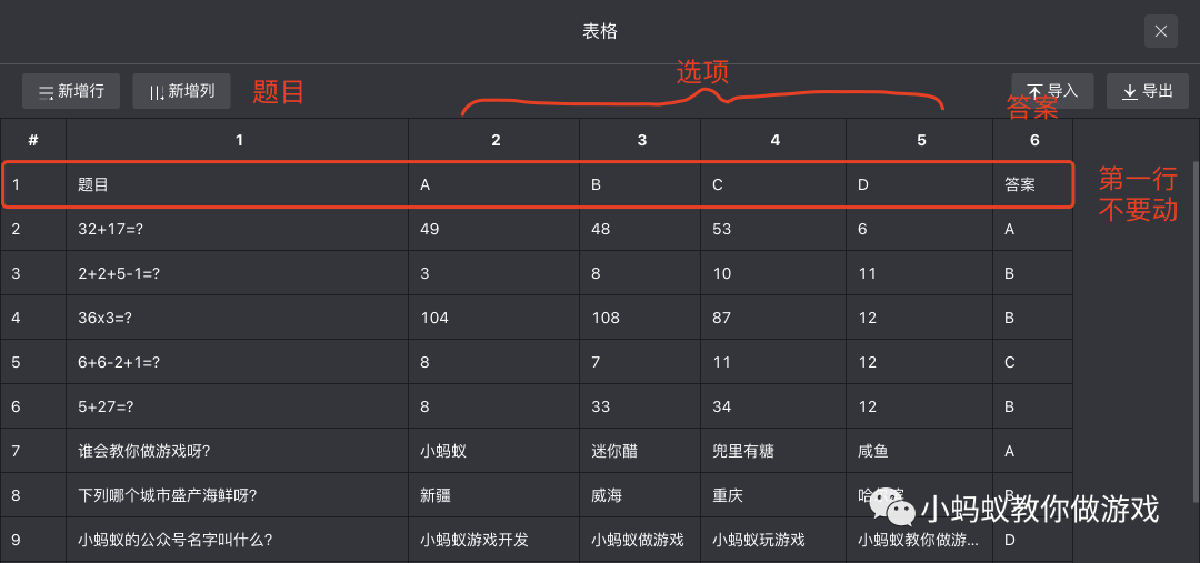 你将会看到下面的这样一个表格,这个就是游戏中的题库表格了。看起来跟我们平时用的电子表格一样。