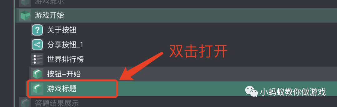 在项目的层级管理中,找到“游戏开始”,双击打开。