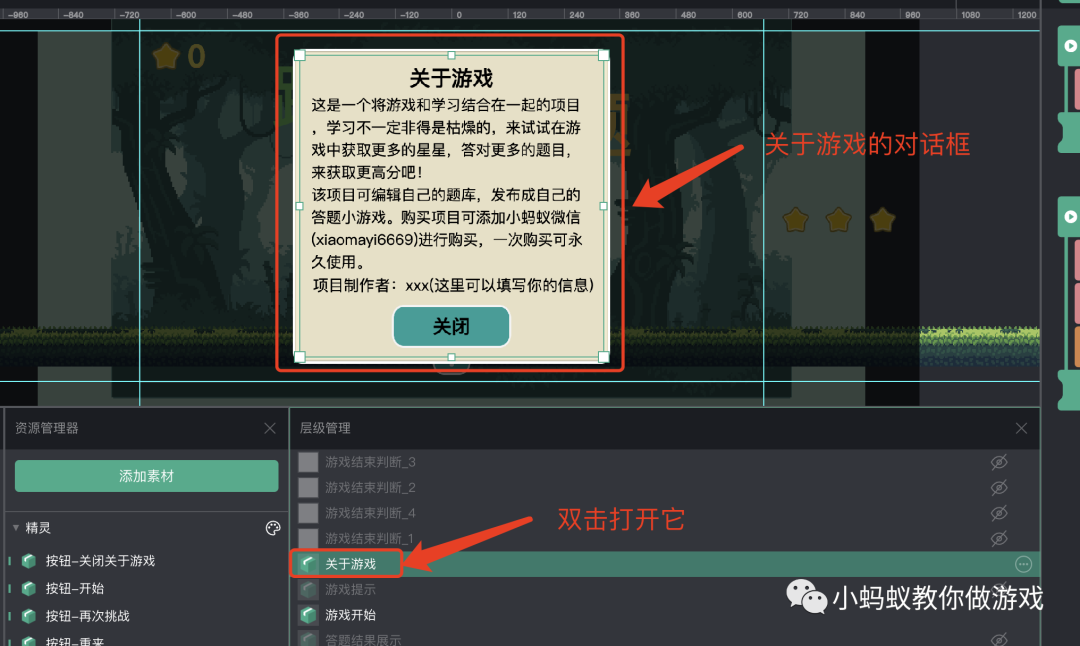 我是会做游戏也会教你做游戏的小蚂蚁,想学习做游戏的话,关注我的公众号【小蚂蚁教你做游戏】就对啦!