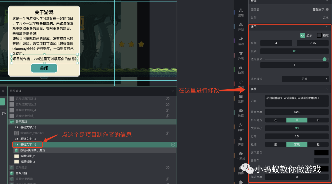 选中“基础文字_15”,可修改项目制作者信息。