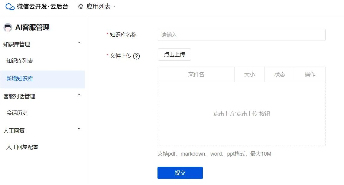 使用管理端配置知识库、配置人工回复消息