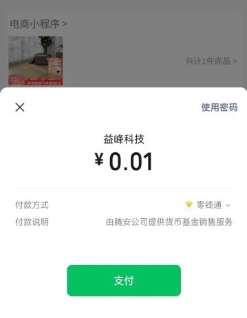 在小程序中调用第 2 步中的云函数,获取预付订单信息后,调用wx.requestPayment唤起微信支付组件完成支付。