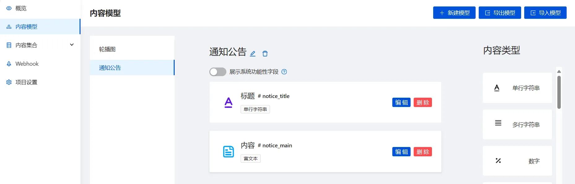 | 标题 | notice_title | 单行字符串 | 是 |