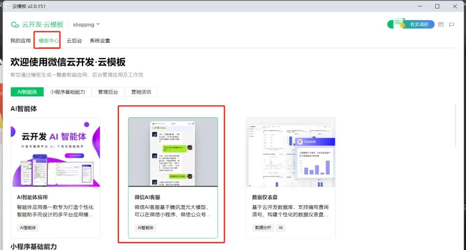 开通云模版,安装微信AI客服