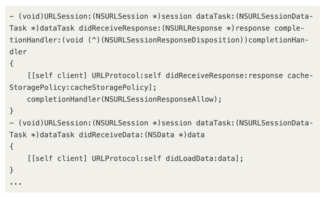 在每一个HTTP请求开始,URL会加载系统创建的NSURLProtocol对象处理对应的URL请求,根据文档我们只需要创建一个子类继承自NSURLProtocol,通过registerClass:方法注册我们自定义的网络协议类,来实现网络拦截的目的。那么,我们需要解决的问题就是使用自定义的NSURLProtocol来处理App所有的网络请求,苹果官方文档中CustomHTTPProtocol介绍了如何自定义NSURLPtotocol来实现网络拦截。回到之前的问题,我们如何使用NSURLProtocol拦截Http请求?只需要判断对于那些请求request需要处理;对于需要处理的request做出哪些处理;再将响应请求的数据传递给调用者。