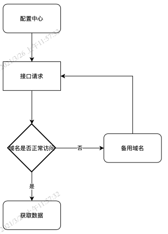 我们从运维那边申请了配置中心的备用域名,在配置中心请求接口做了降级策略,这样就可以保证配置中心接口在极端情况下也可以正常访问,整体方案流程如下图所示: