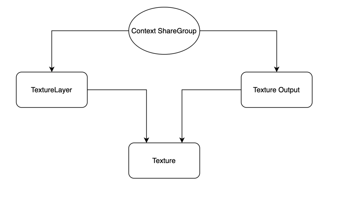 App中使用OpenGL来渲染都会有两个线程,一个负责加载资源,一个负责渲染的方式。这两个线程会共用一个EAGLContext。Flutter在EAGLContext的处理上采用两个线程彼此通过ShareGroup来共享纹理数据。在Flutter创建的Context时,将它们的ShareGroup透出。在Native通过OpenGL渲染的模块创建Context时,在Native侧保存好这个ShareGroup ,这样当Native创建Context时,都会使用这个ShareGroup进行创建,这样就实现了Native和Flutter之间的纹理共享。