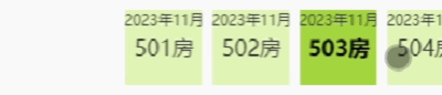 接着遍历打印房间数组roomList,被选中的房间采用.roomPicker.active,第一个索引值为0房间元素margin-left设置为calc(50% - 32px),最后一个元素的margin-right则设置为calc(50% - 32px),这样就可以实现首尾元素都可以居中显示了;/*每个房间元素的宽度width是64px,所以要减去一半宽度*/
