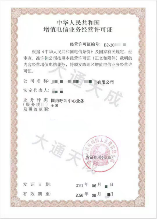 3、提供贵司营业执照副本原件彩色扫描件。注:经营范围要有“经营电信业务”、“增值电信业务”相关字样或列举出本次申请及已取得的电信业务种类。