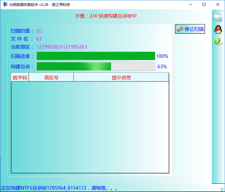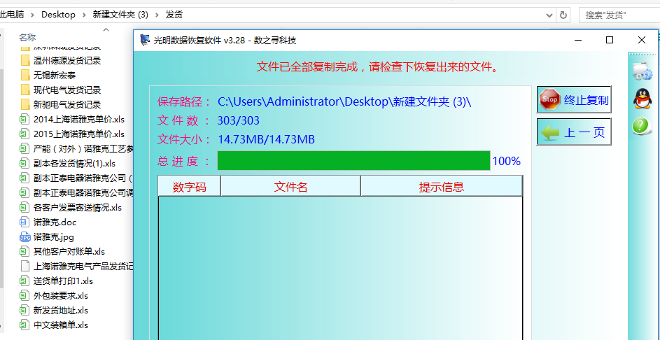 步骤2:程序会很快将找出的资料,放到与要恢复盘卷标名相同的目录中