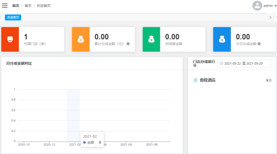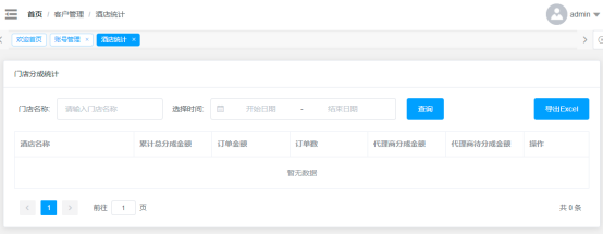 1.查看代理商名下酒店分成比例及订单明细