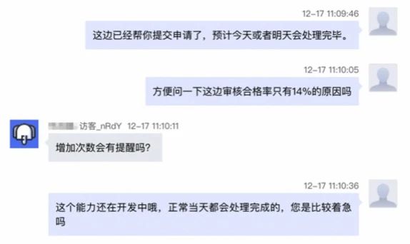 A:处理时效1-3个工作日,正常当天或者第二天会处理完毕,后续会上线额度提醒功能。