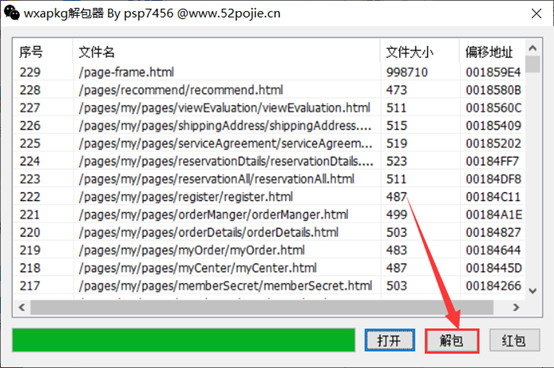 • 此时就应该打开我们下载的反编译文件WxApkgUnpacker.exe来进行解包