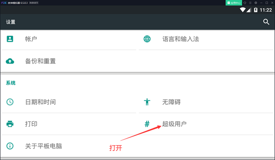 • 首先到模拟器内部设置超级用户权