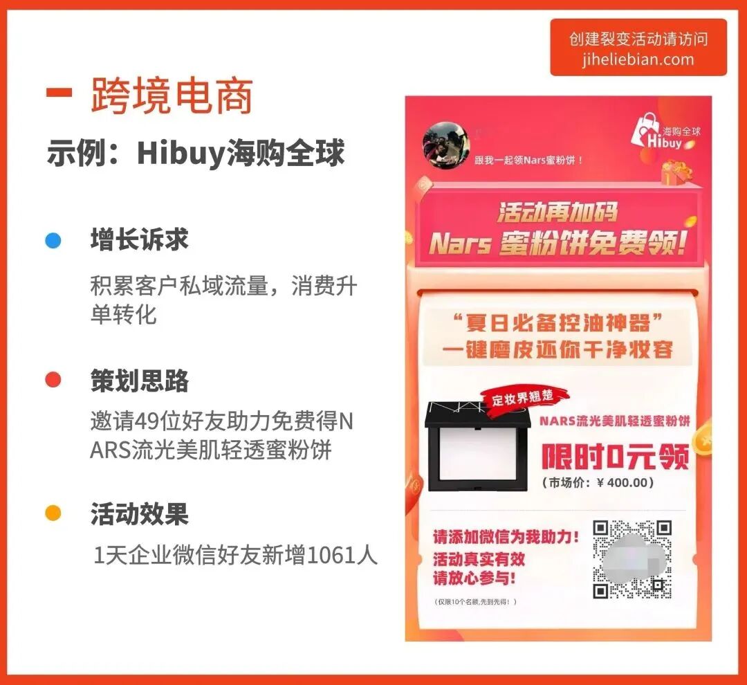 企业微信好友裂变玩法的优势是路径简短,对于用户来讲,只有扫码添加企业微信和分享2步,就有机会完成任务领取奖品,也是我最推荐的企业微信的裂变方式。